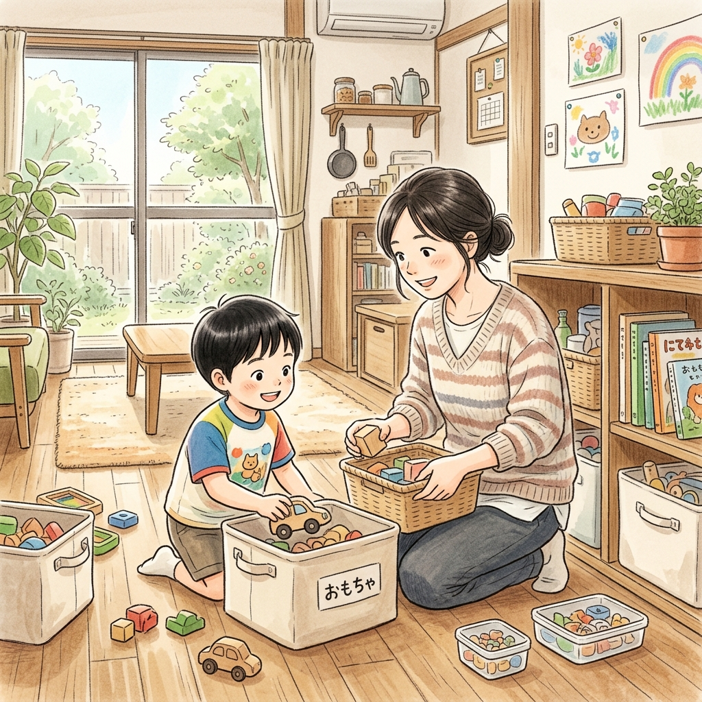 まず手をつけたのは、小さな「たまりもの」。お土産でもらったキーホルダーや、お菓子のおまけなど、気づけばどんどん増えていくものたちです。今回は子どもたちと一緒に仕分けをして、思いきってたくさん手放しました。