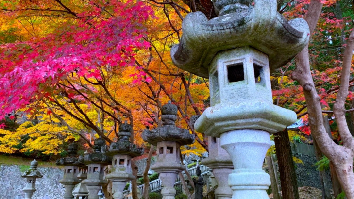 山城町の紅葉も終盤。冷たい空気と色づいた山の景色が、神社全体の気配をいっそう際立たせています。