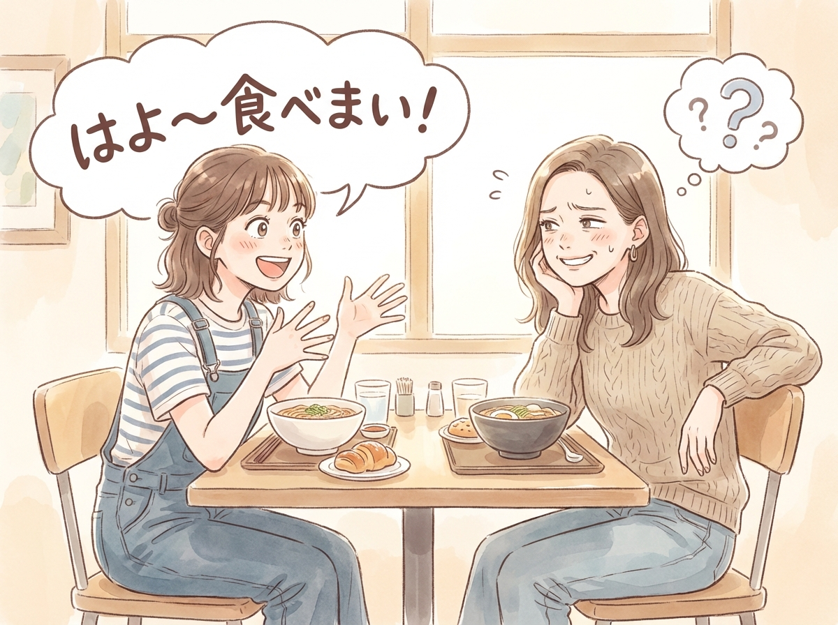 「はよ〜食べまい」=「早く食べなさい」