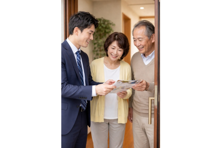実は、香川県内では提携企業があり、アポイント先となる既存のお客様が数多くあるんです。そのため、最初は、アポイントチームが取得したアポイント先へ訪問し、提案を行うスタイルが中心となります。そのため、いわゆる「飛び込み営業」ではなく、興味を持っているお客様に提案する営業からスタートできますよ。
