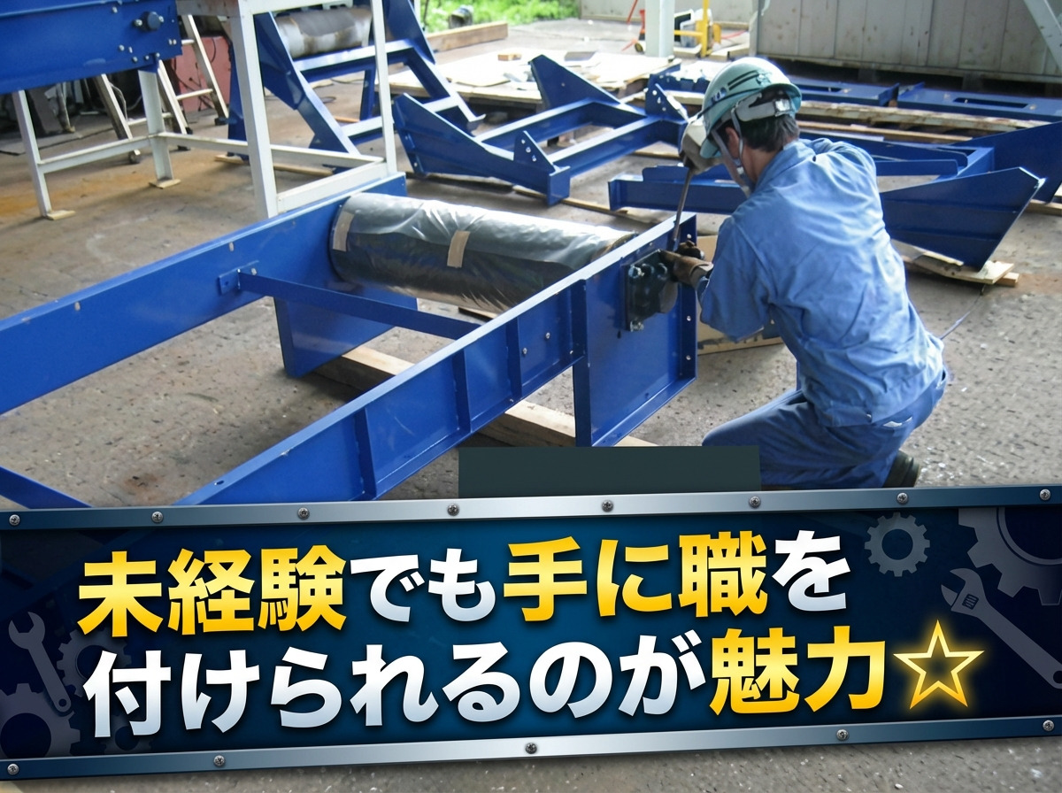 - 工場内で、産業機械、各種プラント用機器、大型のタンクなどの製作に携わって頂きます。作業は手順が決まっており、先輩スタッフが丁寧に教えるので、未経験の方も安心して始められます。