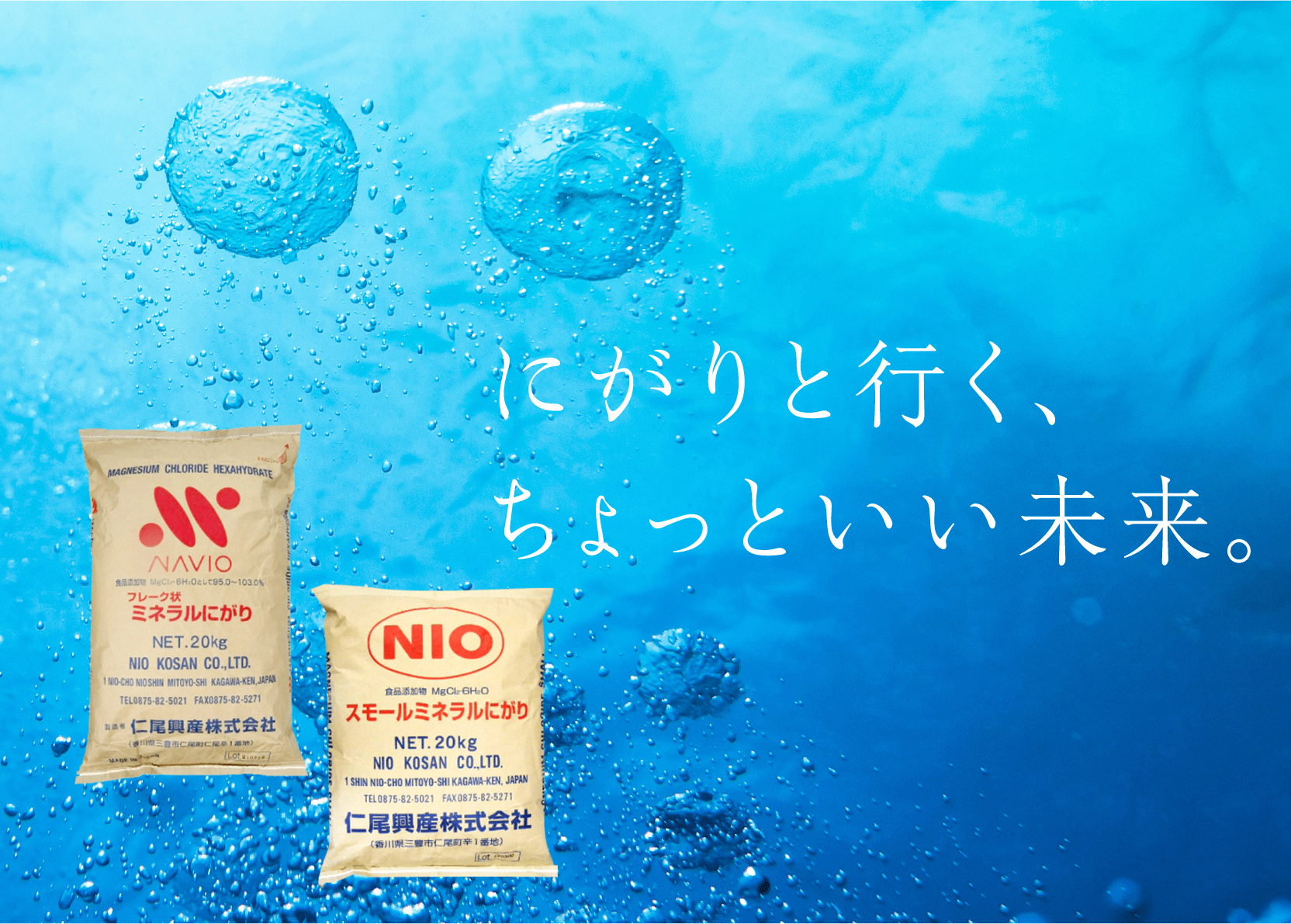 弊社は1919年に創業、塩化マグネシウムの製造・販売をしております。塩化マグネシウムは、にがり(豆腐の凝固剤)、凍結防止剤、防塵剤、科学工業薬品原料と多様な商品となり、その生産量は日本一です。