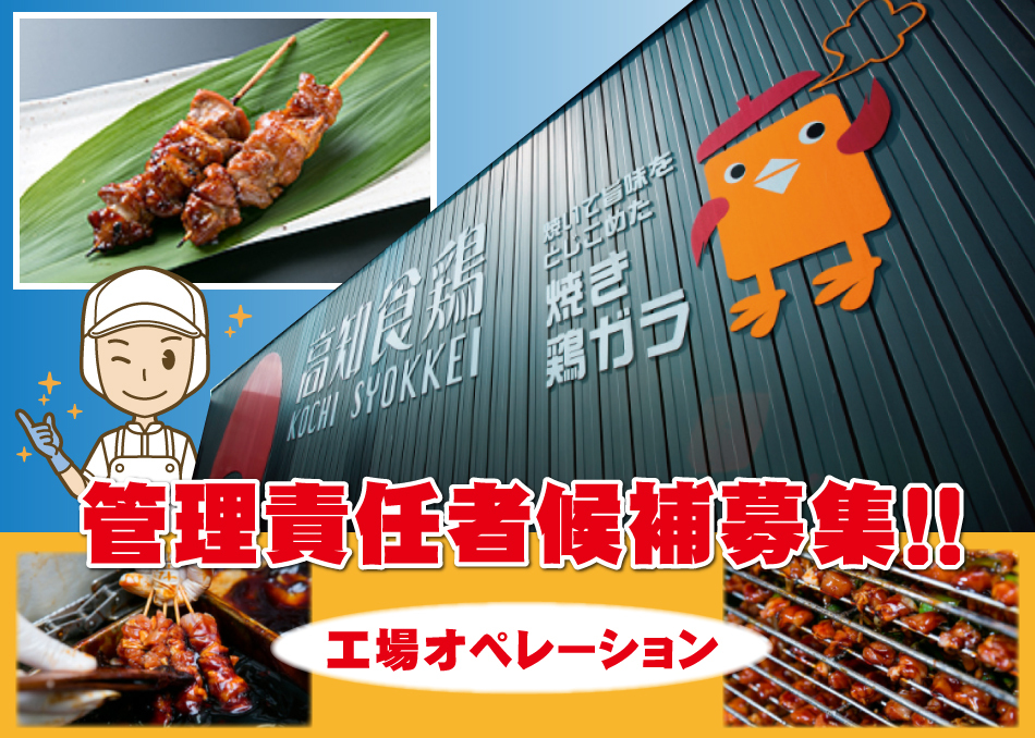 高知食鶏加工株式会社では、焼き鳥を中心に鶏肉の焼き加工を行い、多くの食卓に美味しさを届けています。こだわりの製法で、品質の高い食品をつくる現場で、製造管理職候補として活躍しませんか?